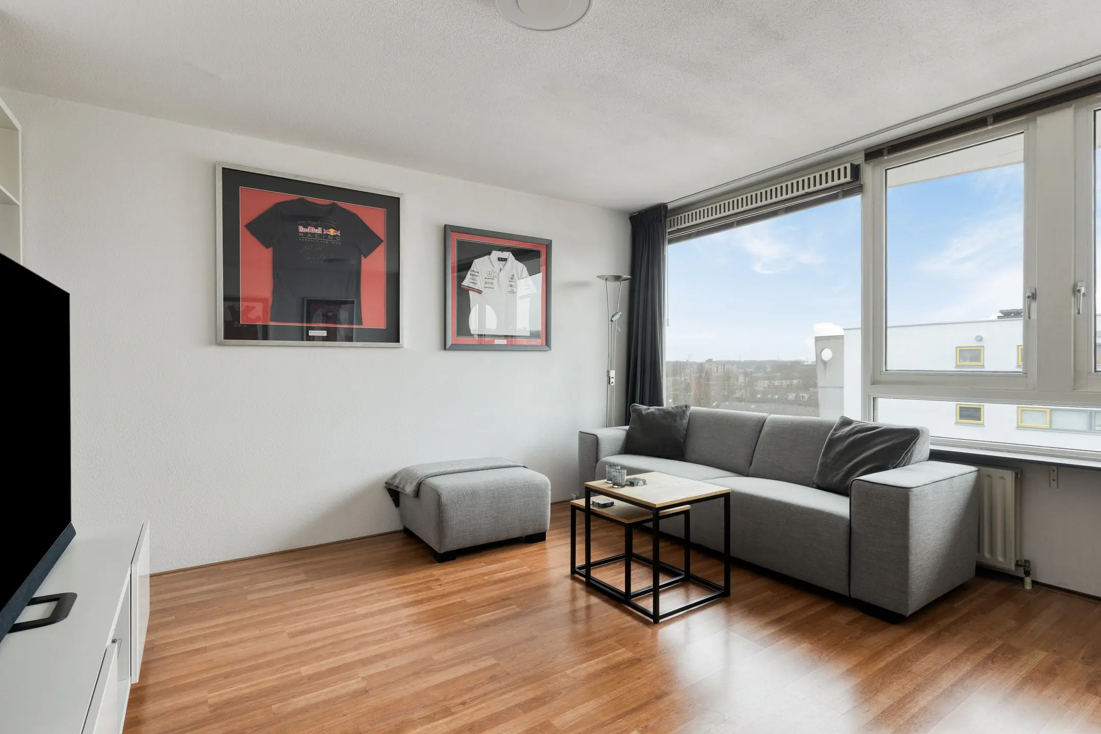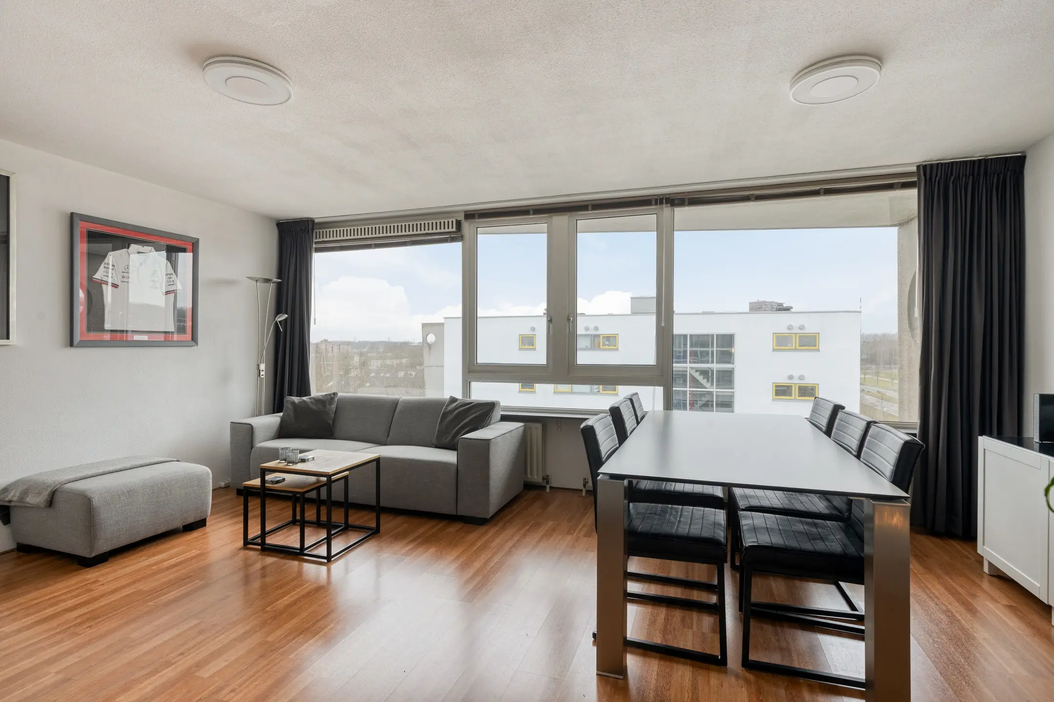 Here you'll find the spacious living room spanning the entire width of the house. Large windows provide ample natural light.