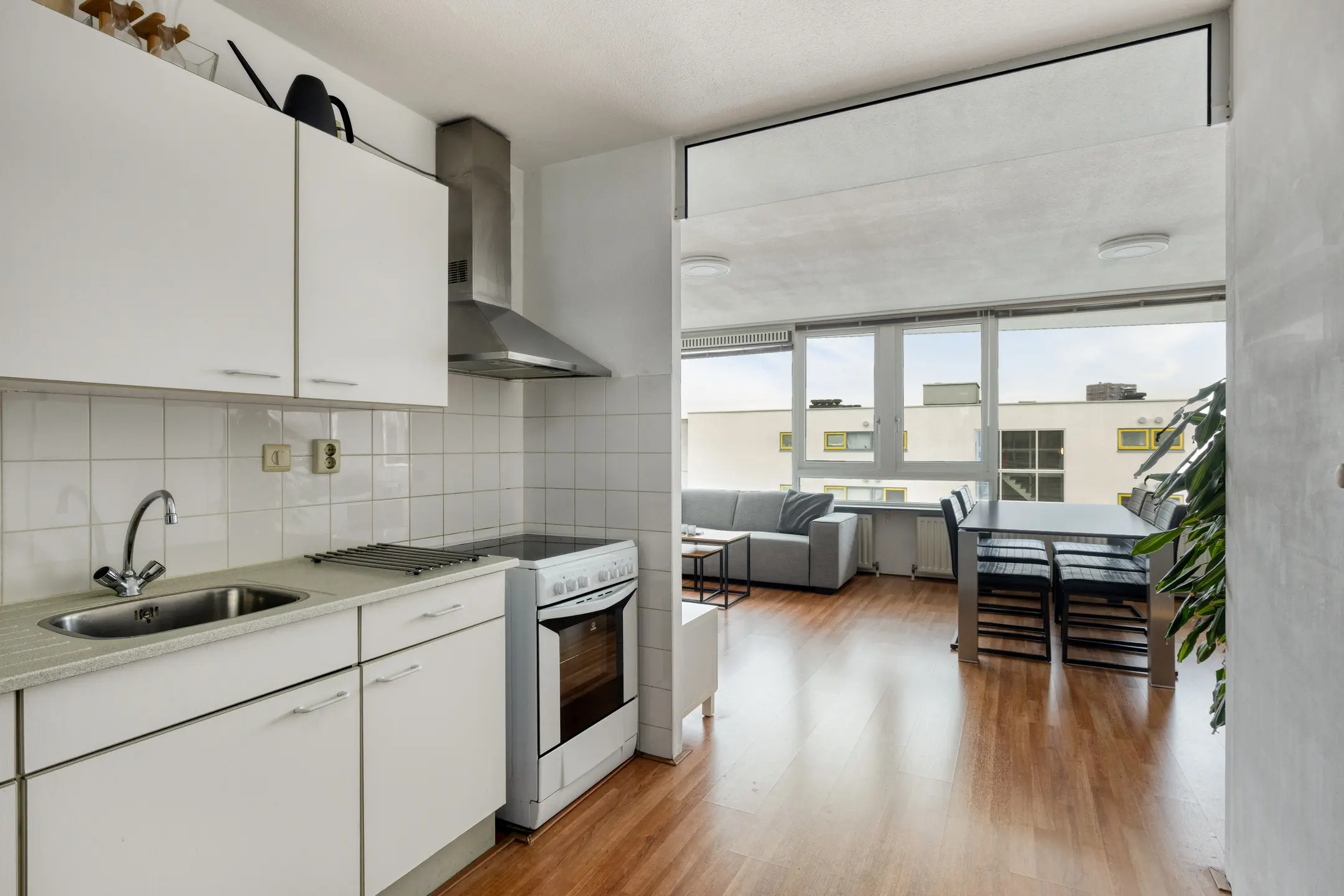 De keukenopstelling bevindt zich naast de woonkamer en kan volledig naar eigen smaak worden gerealiseerd.